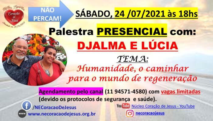 Mais uma palestra presencial com um tema maravilhoso para refletirmos, 24 de julho às 18hs. Entre em contato com o canal 11 94571-4580 para agendamento. Devido o distanciamento social as vagas são limitadas.