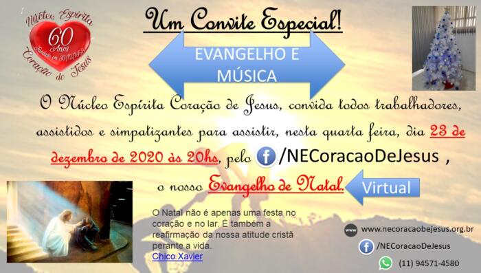 Quarta, 23 de dezembro às 20hs. EVANGELHO DE NATAL.